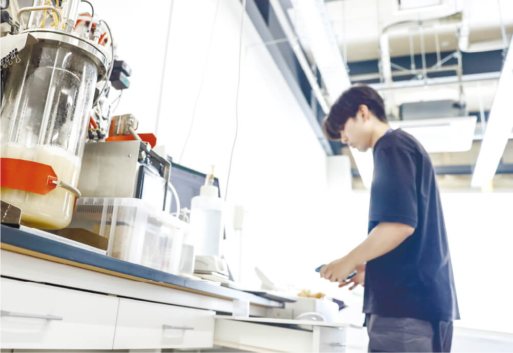 納豆菌って、すごく増えるのが速くて、しかもタンパク質も豊富なんです。食糧として非常に優秀な可能性を秘めている、とその魅力に気付いてからは、もう夢中でしたね。卒業後は共同研究をしていた今の会社で研究を続けたいと思いました。