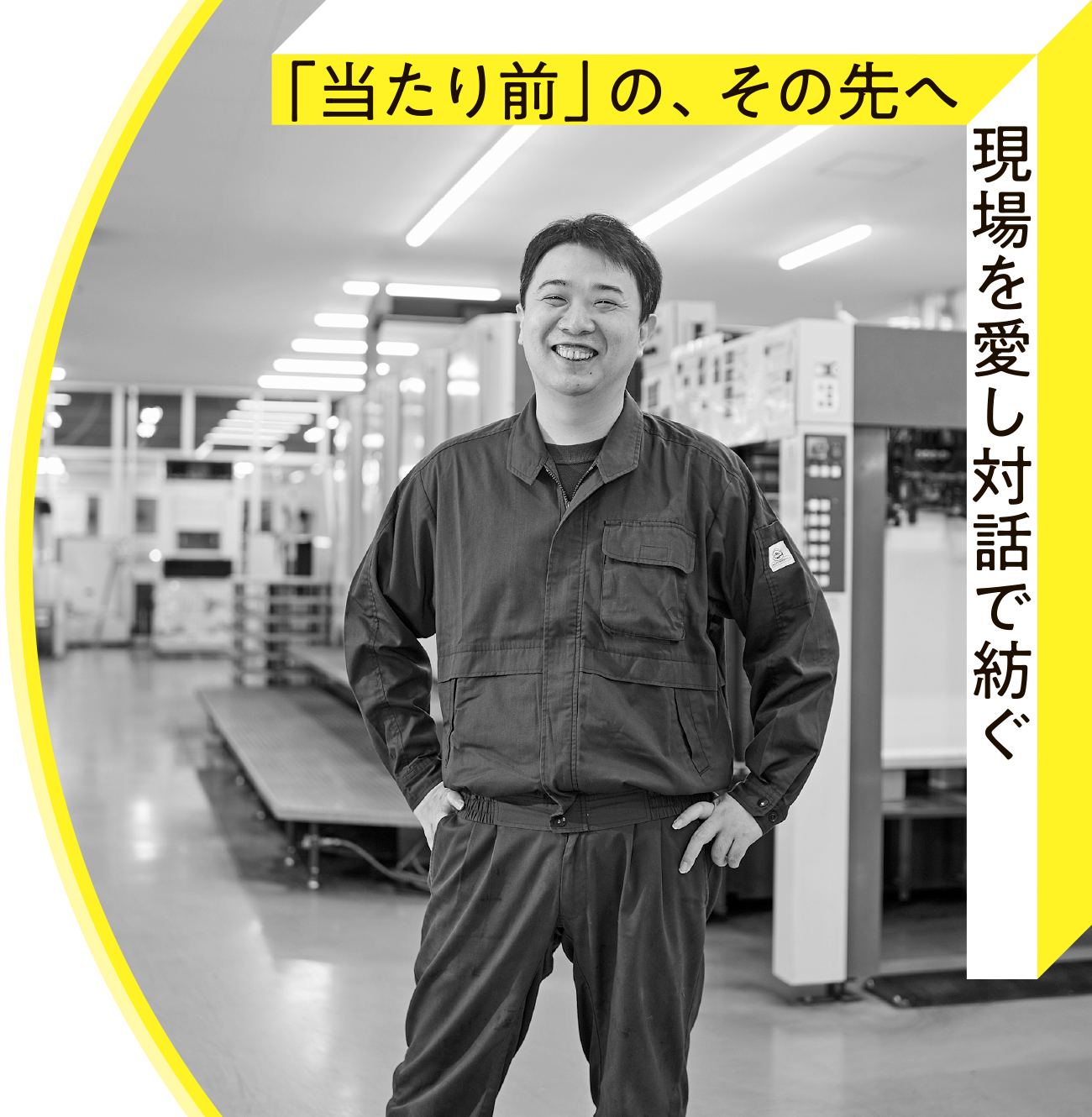 パソコンを使える仕事だと思ってこの世界に飛び込んだ。だが、待っていたのはインキの香りと巨大な印刷機がうごめく現場の熱気だった。以来、工場一筋で印刷技術を高め、一昨年からは課長として製造現場を率いている。