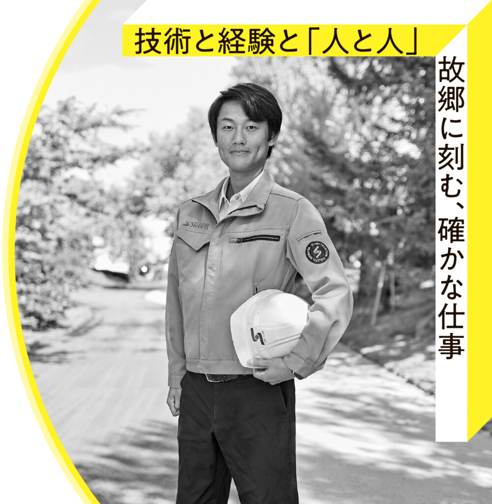 家族や友人とのドライブ中、「あれ、俺が造ったんだ」と胸を張る。住み慣れた山形で、みんなが使う、何十年も残るものを造る。いい加減な仕事はできない。一歩先を行く先輩たちの背中に、いつかみんなに頼られる自分を重ねる。同じ現場は二度とない。その一つ一つを経験に変えていく、確かな価値がこの仕事にはある。