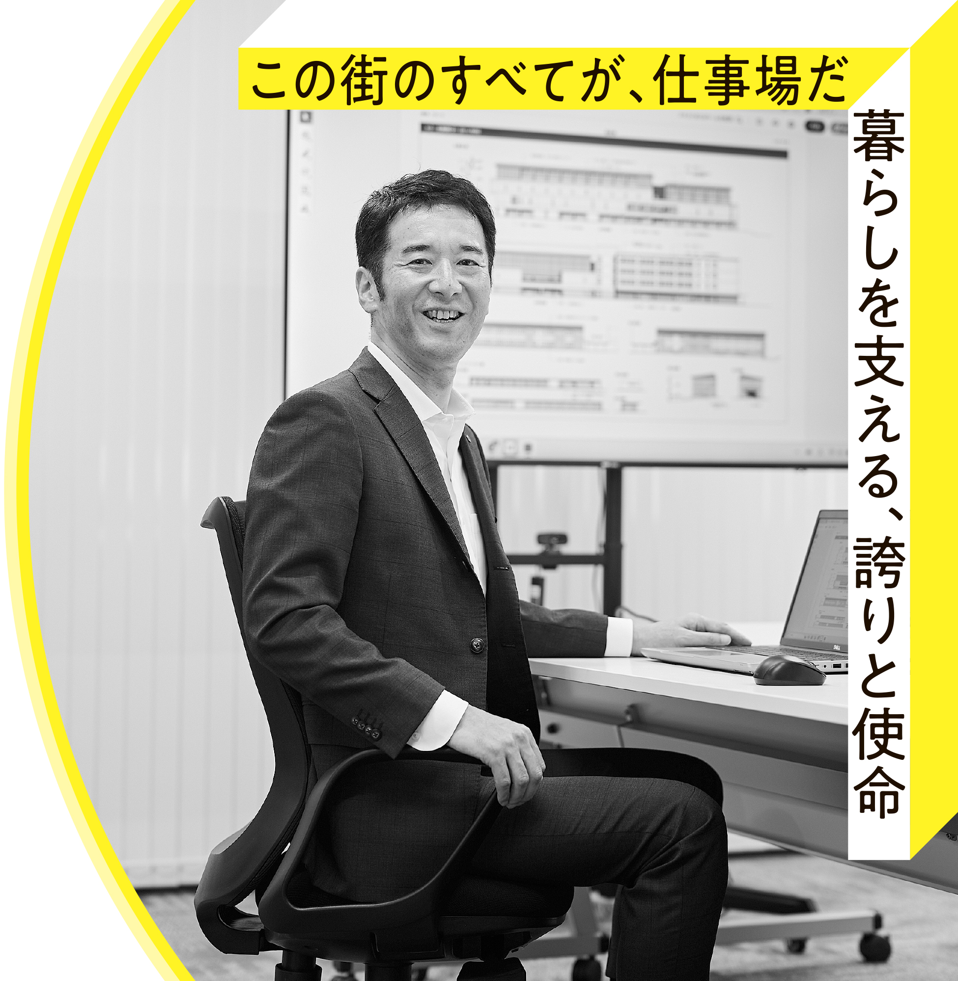 今は、設計のほか、官民連携の街づくりなど新たな事業を開拓する部署に身を置く。かつて学生たちに語った未来を、今度は自らの手で切り開く番だ。先輩方が築いた歴史を、これから入ってくる若い世代へ。その架け橋となることが、今の彼の使命だ。