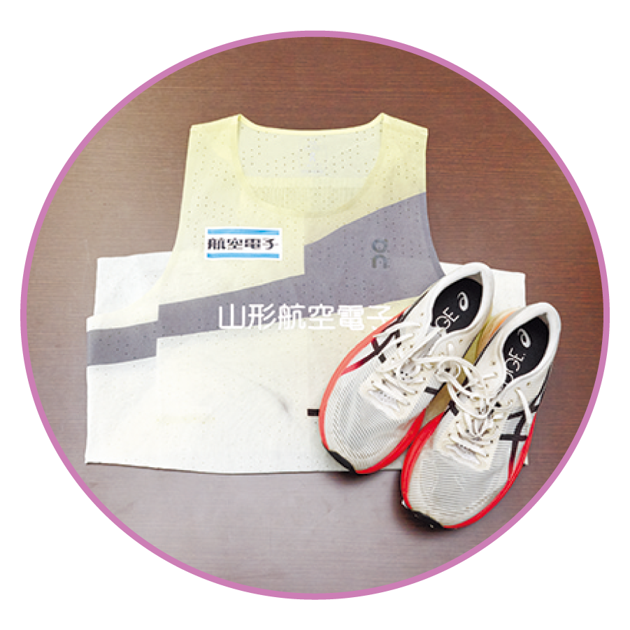 「ロゴ入りの駅伝用ユニホーム」。会社が作ってくれた一着。これを着て走ると会社からの期待を肌で感じます。個人の活動も全力で応援してくれる社風に感謝しています!