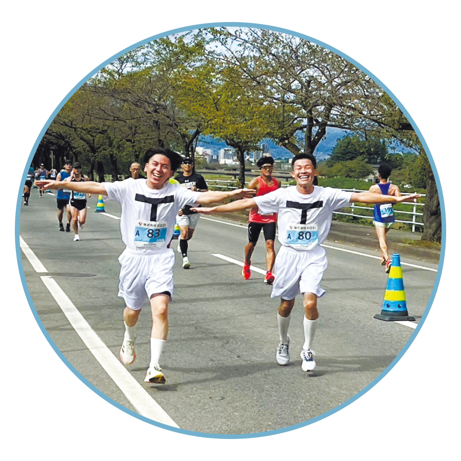 「マラソンの仮装衣装」。芸人の姿で走った際、沿道からの声援に「陸上って楽しい!」と再発見しました。仕事も趣味も全力で、地域を盛り上げながら楽しく走り続けたいです。